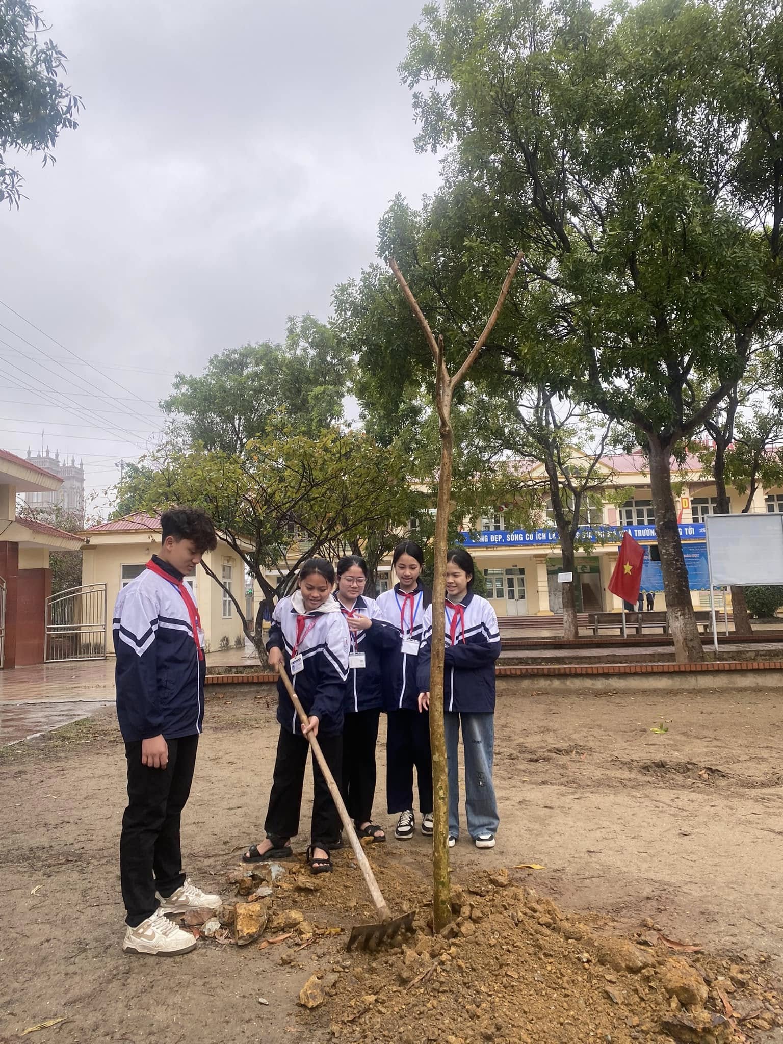 sáng ngày [bổ sung ngày], Trường THCS Châu Sơn đã tổ chức hoạt động trồng cây xanh trong khuôn viên nhà trường, thu hút sự tham gia tích cực của toàn thể thầy cô giáo, học sinh và đại diện phụ huynh.